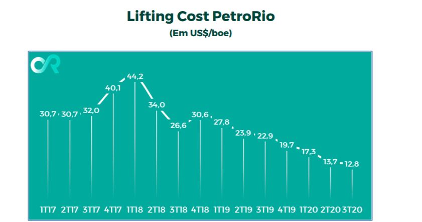 Outro destaque dos resultados da PetroRio é a continuidade da redução do custo médio de extração do barril (lifting cost). Depois de ver esse valor chegar aos US$ 13,7 no segundo trimestre – metade do valor em comparação ao ano passado – a petroleira registrou agora US$ 12,8 de lifting cost no terceiro trimestre.